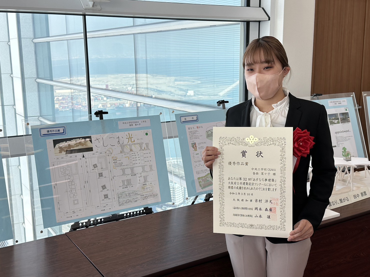 奨励賞として建築学科1年生 仁科さん