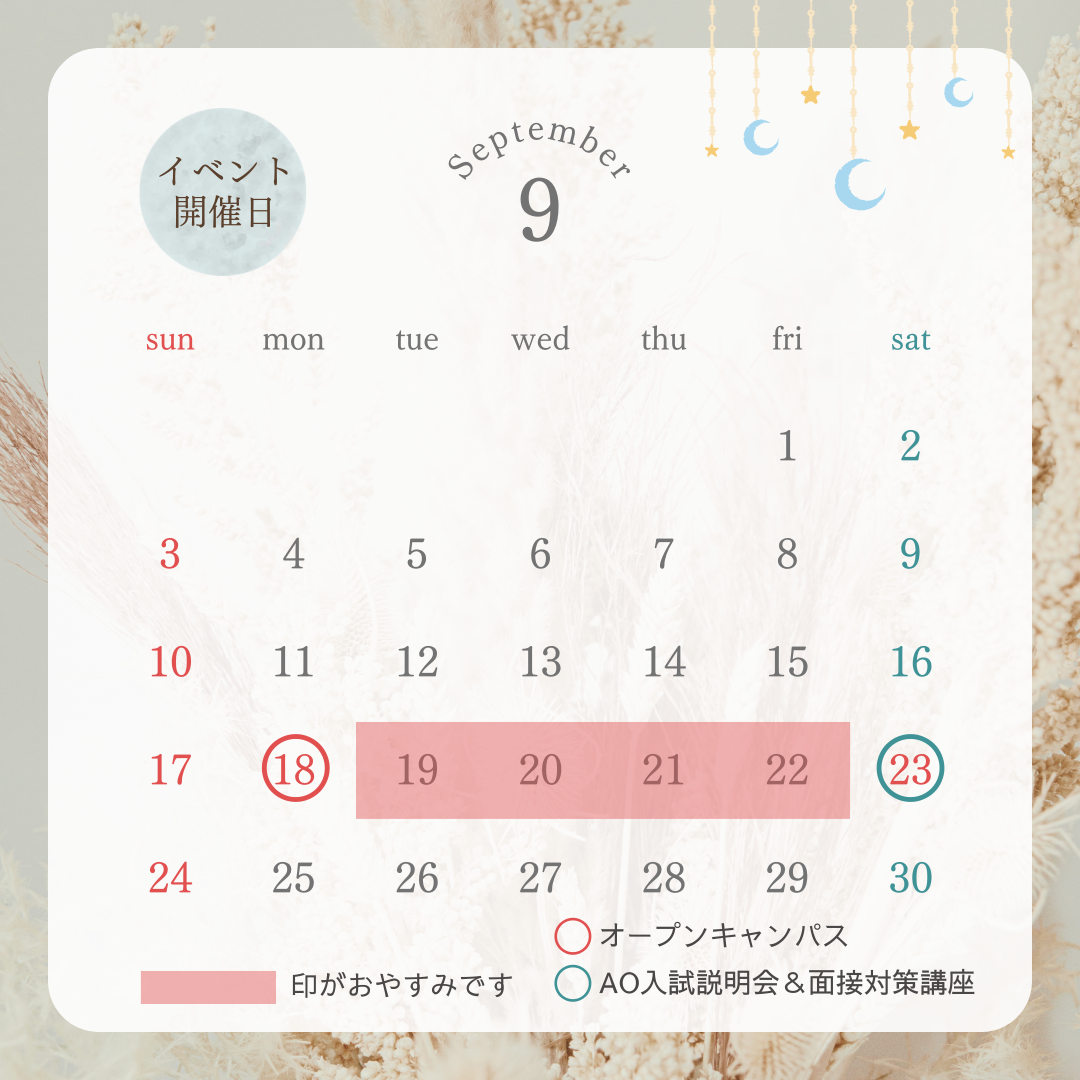 また、休業期間中はAO入試エントリー・出願で必要な書類をご持参いただいてもお受け取りが出来ませんので、ご注意ください。