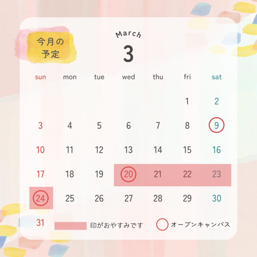 学期末休業期間 令和6年3月20日(水)~令和6年3月24日(日)