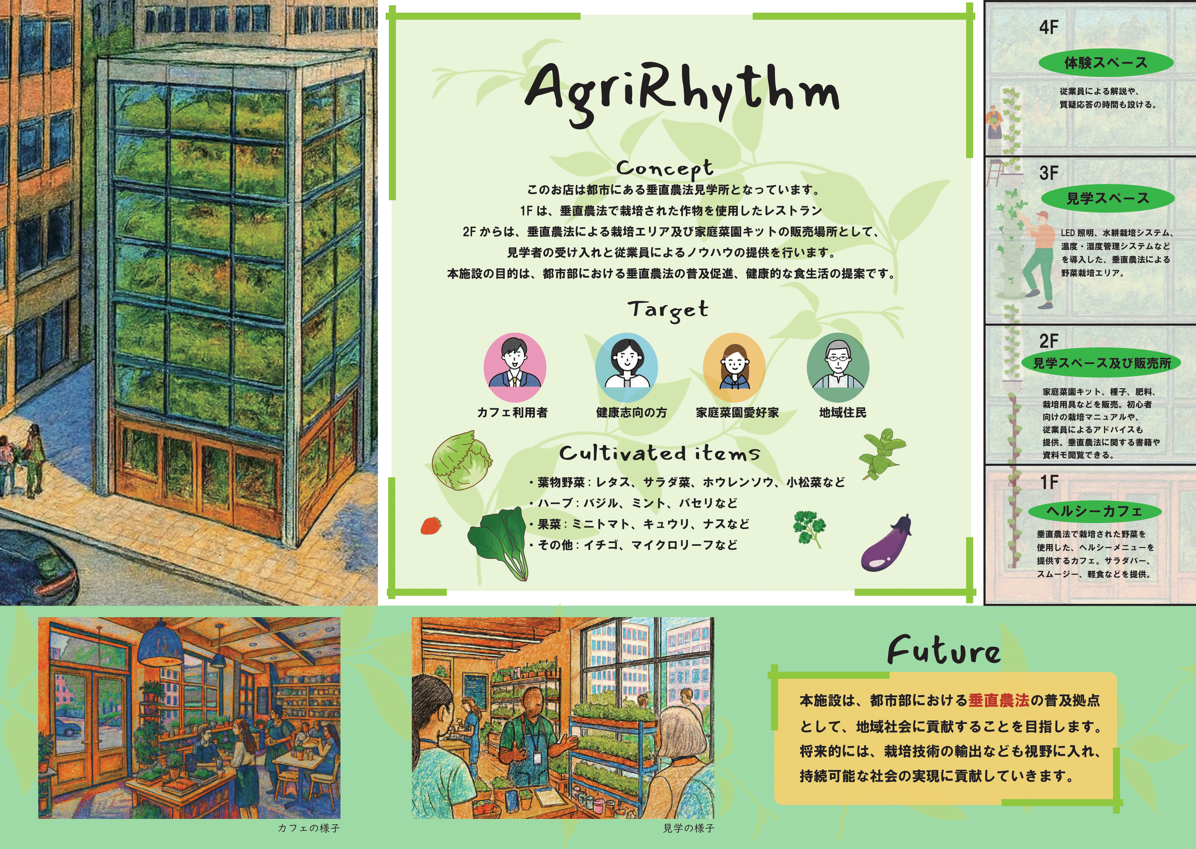 ターゲットとしては周辺地域の住民や健康志向の方、家庭菜園者、レストラン利用者になっています。本施設の目的は都市部での垂直農法の普及促進と、健康的な食生活の提案です。